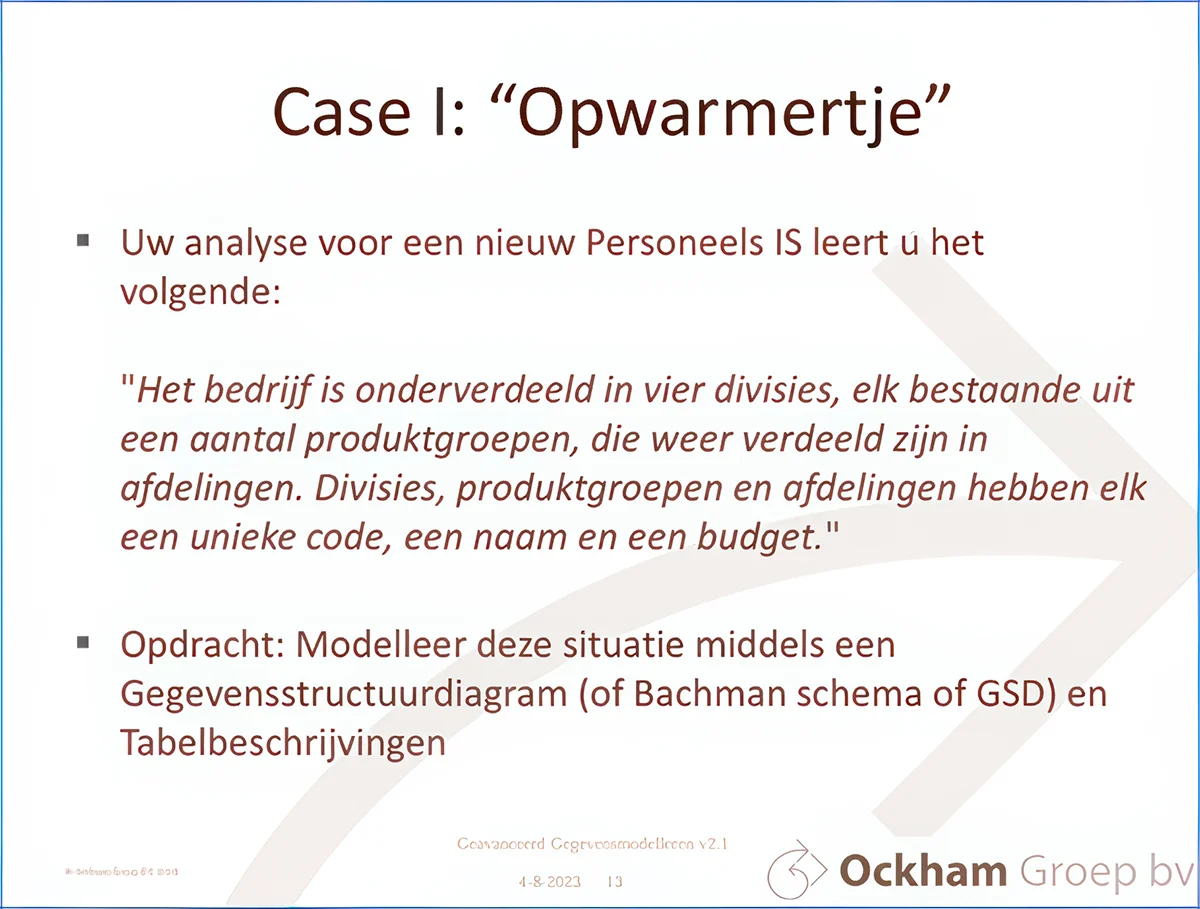 Maar waarom niet zelf aan de slag met de bestaande algemene ai-producten? Zelf heb ik met ChatGPT een database-ontwerp gemaakt. Ik heb een casus (zie hierboven) voorgelegd die bijna elke deelnemer aan een workshop gegevensmodellering op het verkeerde been zet. ChatGPT doet het in sommige opzichten beter dan mijn cursisten, maar komt tegelijk met extreem gekke suggesties. Het is een bekend beeld: generatieve ai is vooral nuttig in de handen van experts. Voor de database-mensen: hier mijn dialoog met ChatGPT.
