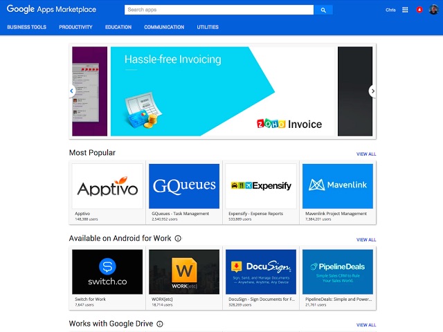 Bedrijven die gebruik maken van Google Apps for Work (dat onlangs de twee miljoenste klant optekende) krijgen toegang tot cloud-apps van derden die door Google worden aanbevolen. Op dit moment bestaat Google Apps for Work uit apps voor communicatie (Gmail, Hangouts, Agenda, Google+), opslaan (Drive) en samenwerken (documenten, spreadsheets, formulieren, presentaties en sites).