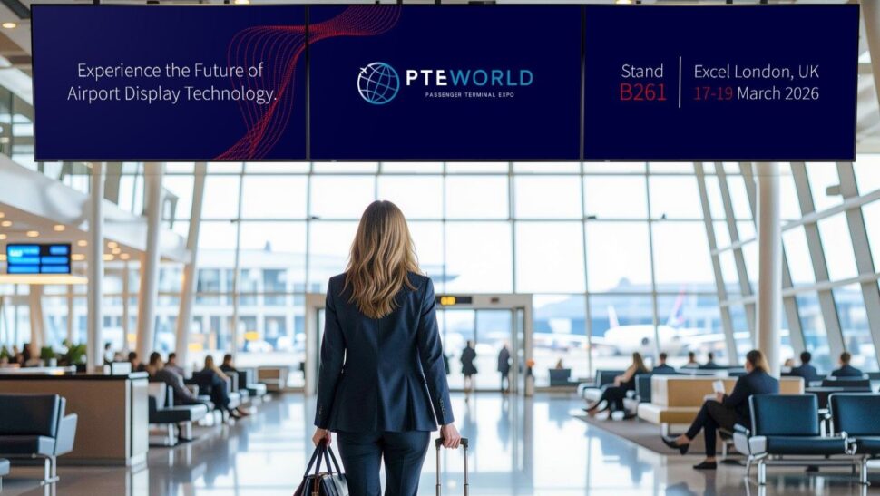 Het Japanse bedrijf presenteert zijn nieuwste displayoplossingen voor luchthavens tijdens de Passenger Terminal Expo (PTE) 2026 in Londen volgende week. Het portfolio bestaat uit vier productlijnen: