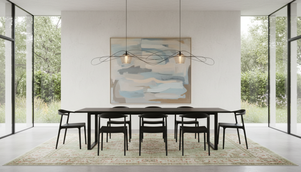 Een van de grootste fouten bij vloerkleden is een verkeerd formaat. AI kan helpen door verschillende schaalopties te visualiseren: